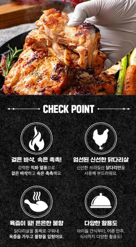 촉촉하고 쫄깃한 **닭다리살 100%**에