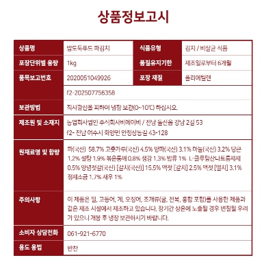 밥도둑*여수 가정식 파김치1kg-[1월14일/수요일수령]